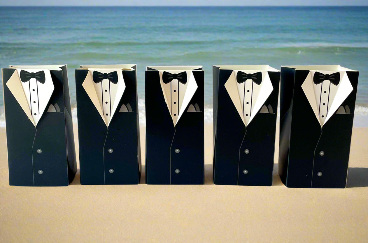 Imagine (5) perfectly selected Groomsmen gifts, each in a stylish tuxedo box. It's sophisticated and impressive. And that's not all! Customize by choosing from our luxurious GAHLAY! Beard Oil scents to match each groomsman's personality. Mix and match to your heart's desire!
