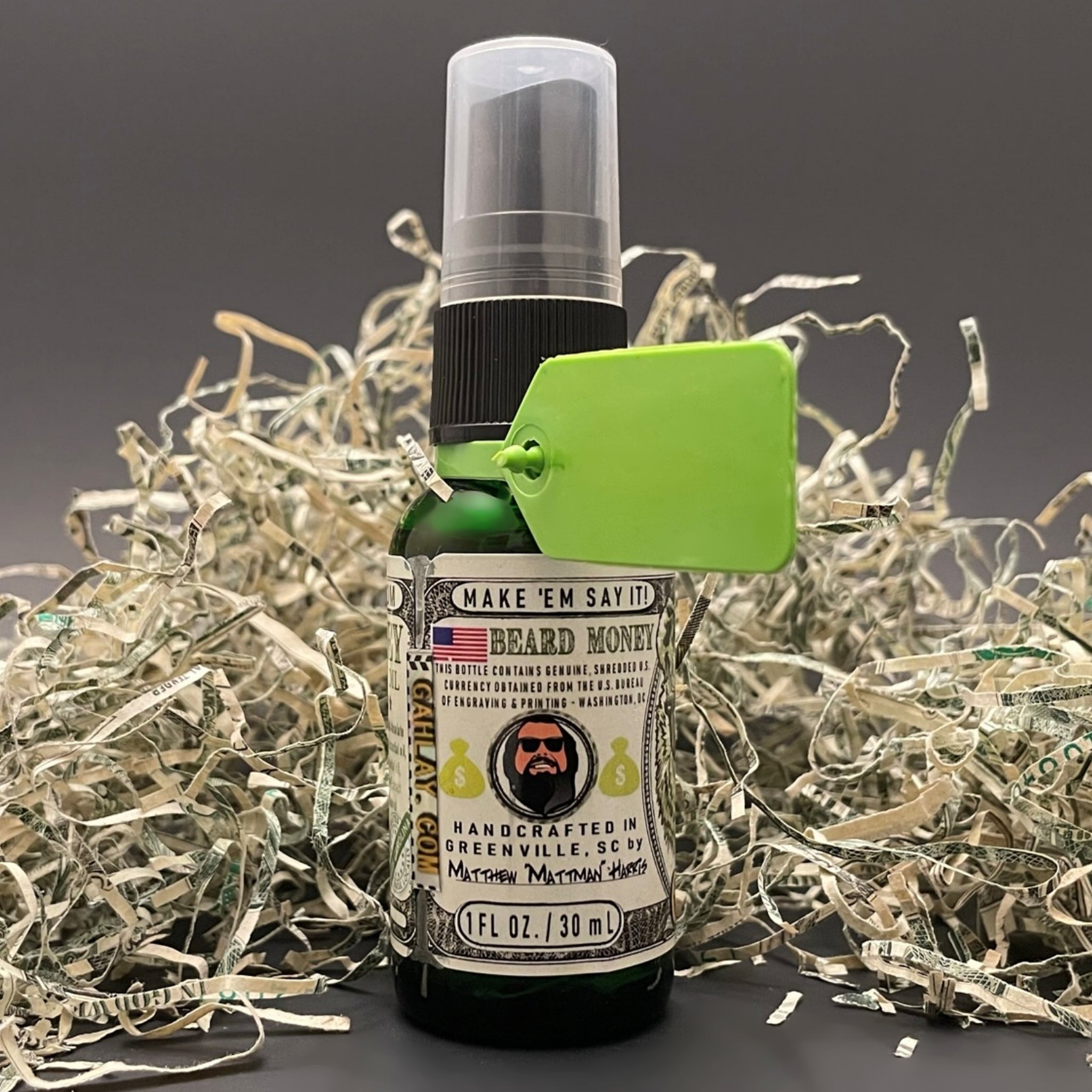 GAHLAY! Beard Money Beard Oil - Infused with REAL shredded U.S. currency for a unique grooming experience. Premium beard oil for men, offering hydration and nourishment. Make your beard look like a million bucks and smell damn good with GAHLAY! Beard Money. Matthew "Mattman" Harris GReenville SC