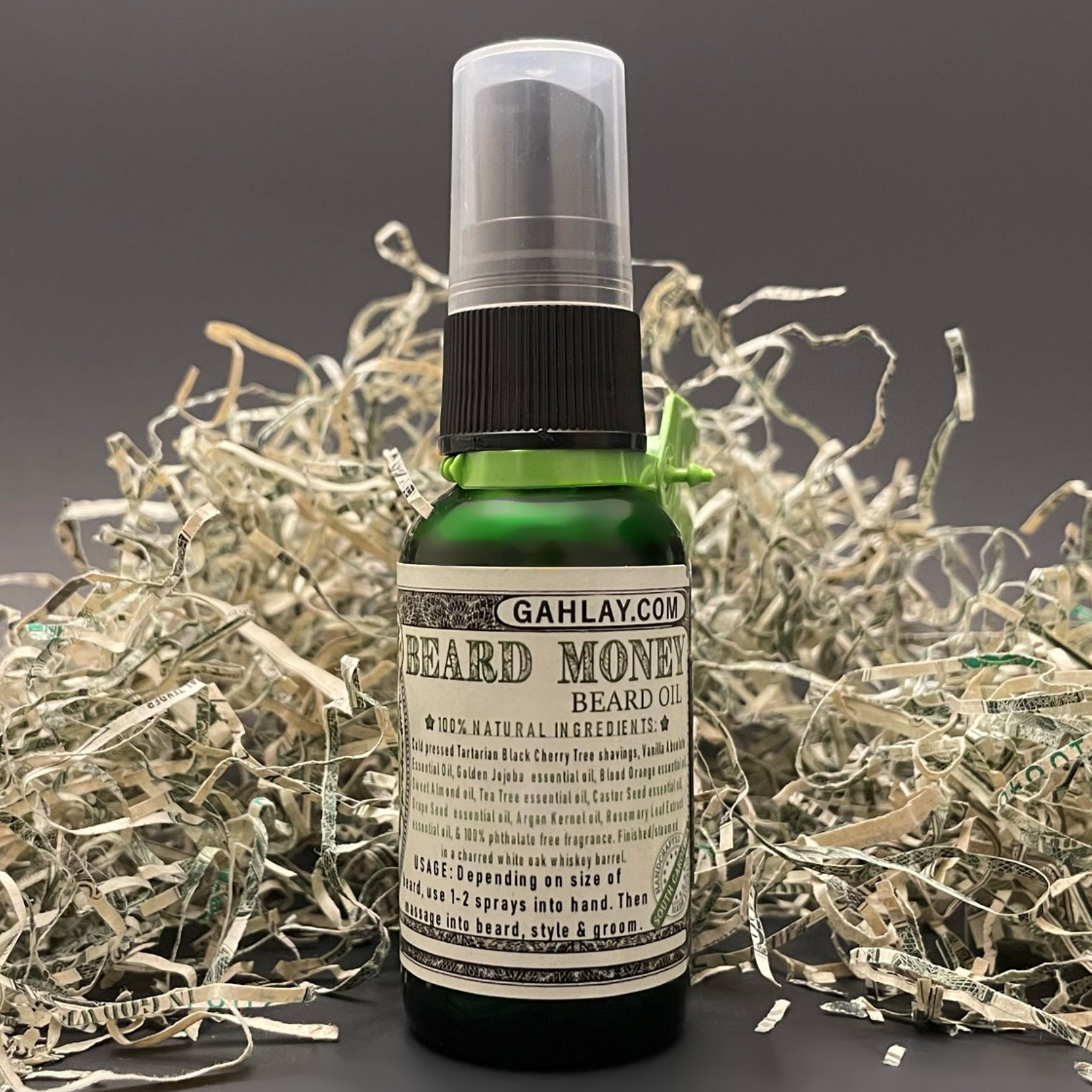 GAHLAY! Beard Money Beard Oil - Infused with REAL shredded U.S. currency for a unique grooming experience. Premium beard oil for men, offering hydration and nourishment. Make your beard look like a million bucks and smell damn good with GAHLAY! Beard Money