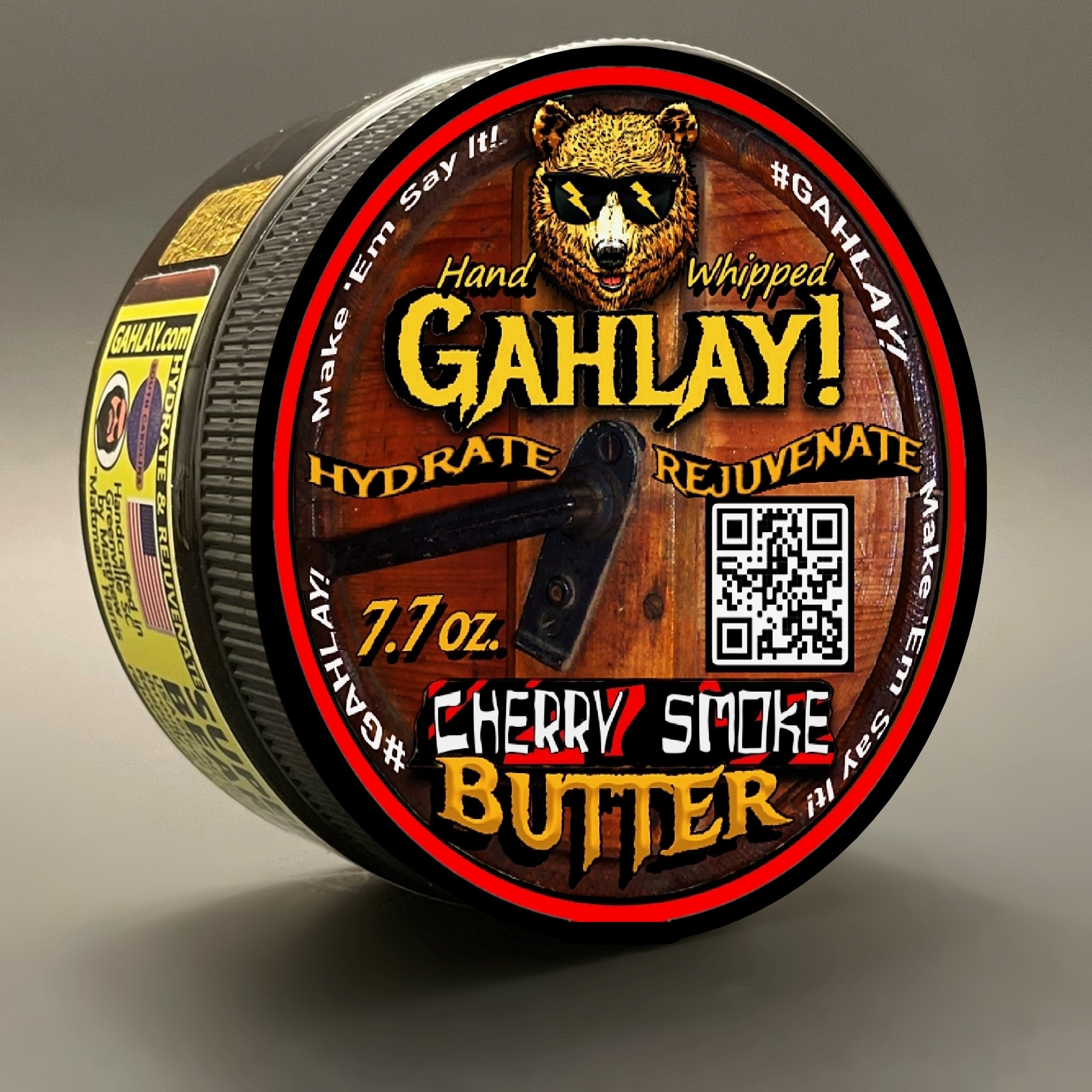 NEW! GAHLAY! Super Rich “Cherry Smoke” Beard Butter is perfect for any & all beard styles. This big boy weighs in at 7.7 ounces. “It smells like Cherry Coke!” “People say it smells like Dr. Pepper!” It smells damn good. Hand whipped & super thick! Most "beard butters" out there are nothing more than soupy lotion. Our Beard Butter not only hydrates your beard & skin, it rejuvenates both perfectly. Plus believe it or not, it actually helps to soften both your beard & skin. That's that rejuvenate part. If you get itchy skin on your face it helps with that too! In the GAHLAY! Lab for almost 2 years, I'm finally glad to offer it to you. Now available in our very popular "Cherry Smoke" scent! This captivating scent blends pipe tobacco and cherry cola, creating a symphony set to "Make 'Em Say It!" Cherry Smoke balances with universally praised sweet and savory undertones. Transport yourself to the 90s with this aroma capturing the essence of the era infused with pure delight. If you love our Vanilla Smoke and/or Peach Smoke, CHERRY SMOKE takes it to a new level, exuding "rizz" with irresistible sweetness.And on top of all that, the thickness helps to keep your facial hair manageable & styled the way you want. We've done the churning, time for you to Make 'Em Say It! ***Free from tobacco or nicotine.