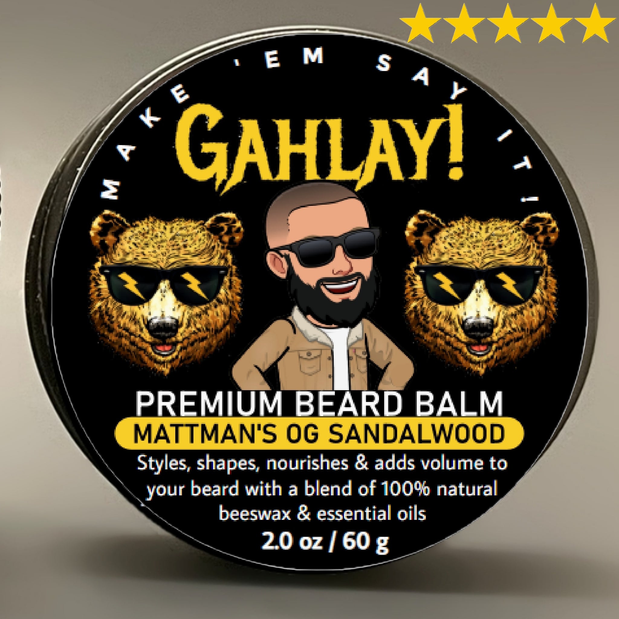 GAHLAY! Mattman’s OG Sandalwood Beard Butter (7.7 oz) – The newest addition, made with Shea & Mango Butter to give your beard a smooth, nourished feel.